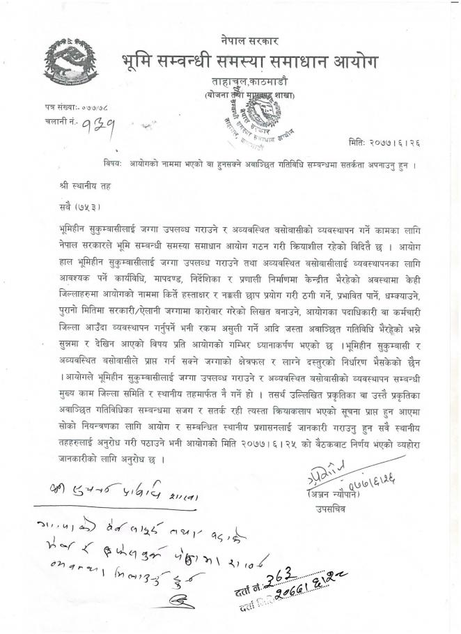 आयोगको नाममा भएको वा हुनसक्ने अवाञ्छित गतिविधि सम्बन्धमा सतर्कता अपनाउनु हुन ।