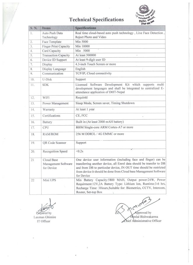 ई-हाजिरी खरिद तथा जडान कार्यको दरभाउ पत्र पेश गर्ने सम्वन्धी सूचना ।