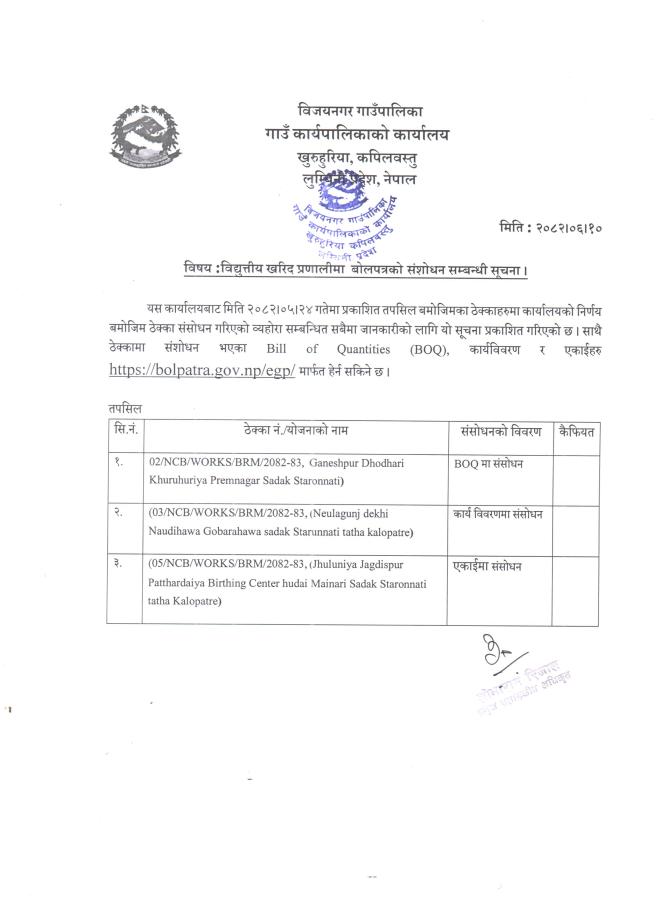 विद्युत्तीय खरिद प्रणालीमा बोलपत्रको संशोधन सम्बन्धी सूचना ।
